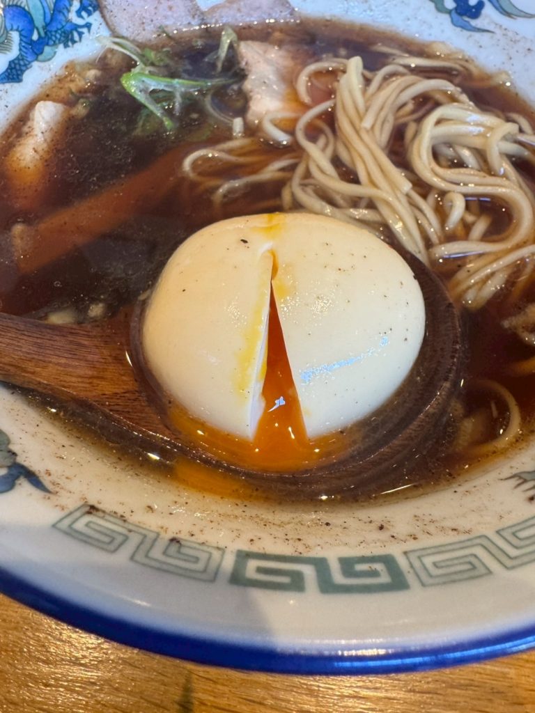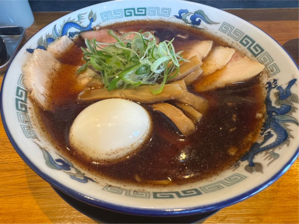 オーダーは醤油ラーメンにチャーシューハーフ&味玉トッピング!