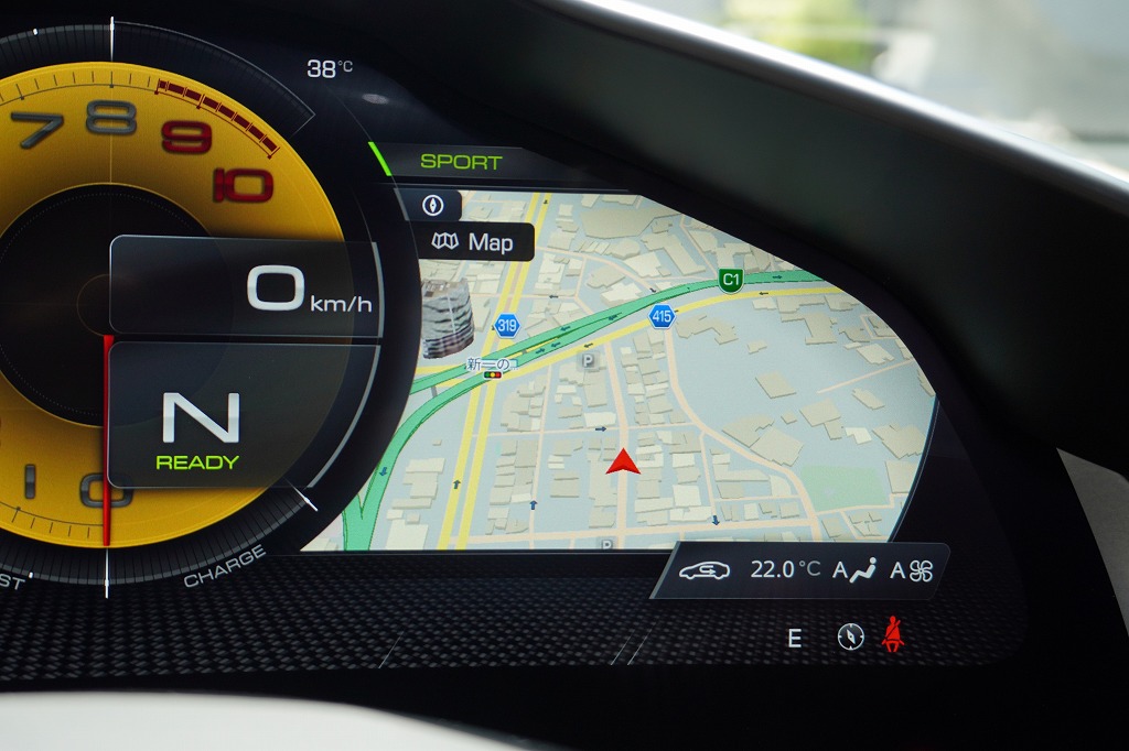 純正ナビも完備しております! ナビやバックカメラ映像、車両の設定などは、すべて液晶メーター内部に映し出されます! 設定を変更することで、メーター液晶全体をナビ画面にすることも可能です!