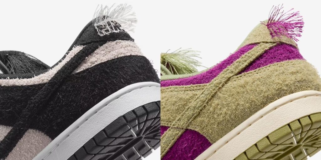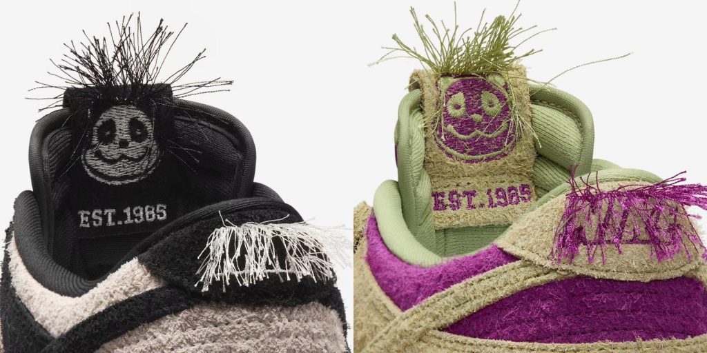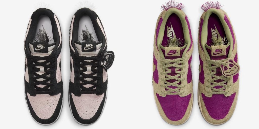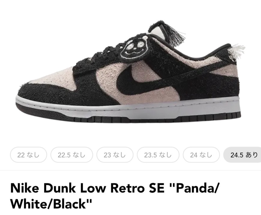 「ナイキ」のダンク ロー レトロから、パンダをモチーフにした新カラーが登場する。アッパーには、毛足が長めのスウェードを配し、ヒールタブの「NIKE」ロゴ部分や、シュータンの内側には、へアリーな加工が施され、個性的なルックに。パンダのチャームも付属し、唯一無二の一足に仕上がっている。カラーは2パターン用意され、一方はピンクがかったホワイトとブラックのモノクロパターン、もう一方は、ビビッドなパープルのベースに、ピスタチオ系のオーバーレイを配したケミカルなカラーパレットだ。圧倒的な個性を足元から主張できる一足で、新しいスタイルに挑戦してみては。